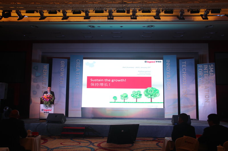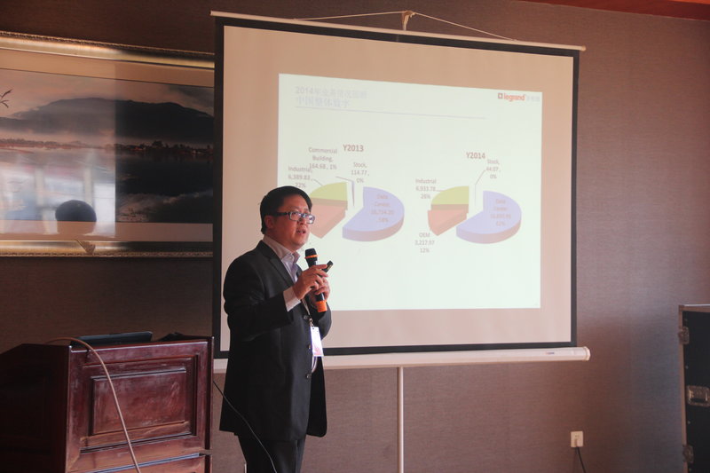 总经理Andrea则对大家提出了一个要求——保持增长!Andrea先生以2013年至2015年的市场调查开头,他详细分析了近年来住宅、商业、工业、基础设施等方面的发展趋势。数据显示,罗格朗无锡在低压电器和顶部安装业务的增长速度几乎是市场增长速度的两倍,即使房地产市场日趋低迷,但罗格朗在其他高端领域的发展还有无限空间。结合2014年的成果以及2015年的计划,Andrea先生从市场推广、流程改进、新品投入等多个方面向大家展示了未来保持增长的秘诀,他表示,疾风骏驰的马年已过,稳扎稳打、开疆拓土的羊年由此开篇。