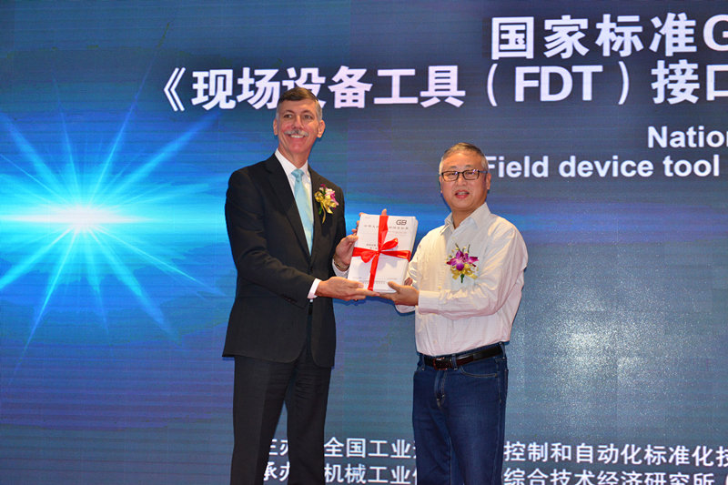 之后,中国仪器仪表行业协会李跃光副理事长对FDT技术在系统集成和互联互通、服务于智能制造发挥的技术优势给予了充分地肯定,对FDT专业委员会表达了殷切的希望:借助FDT标准的发布,促使国内企业快速融入智能制造潮流;仪综所梅恪副所长代表FDT专业委员会主任委员、仪综所欧阳劲松所长致辞,表示新版设备集成技术FDT国家标准的发布对进一步满足企业对智能制造的新需求创造了条件,规范了现场设备和主机系统之间的通信和组态接口,是智能制造核心集成的重要解决方案;SAC/TC124秘书长、仪综所副总工程师王春喜博士代表标准起草工作组介绍了FDT接口规范(6个部分)的国家标准的制定、审查过程和工作情况。随后,大会向该系列国家标准起草工作组的专家代表颁发了纪念证书。