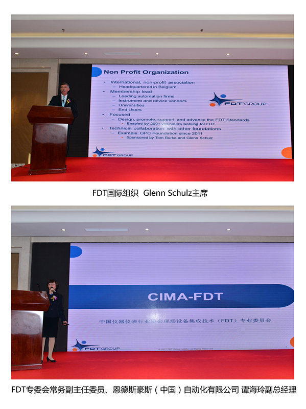 FDT国际组织Glenn Schulz主席介绍FDT国际协会组织架构、服务内容、宗旨和认证过程,并就FITS(FDT工业物联网服务器)技术优势做了专题演讲,他称FDT这次里程碑式的发布会将有利于FDT技术的推广与普及;CIMA-FDT专业委员会常务副主任委员、恩德斯豪斯(中国)自动化有限公司副总经理谭海玲女士回顾了中国FDT专委会成立背景、组织机构,分享了FDT技术标准以及在中国市场的推广活动,共同推进FDT技术的应用设想和规划;FDT国际组织技术副总Tetsuo Takeuchi先生做了FDT2.0技术最新发展动态演讲,重点解析了FDT IIoT服务器特征,为下一代自动化优化了连接和信息交换,加速工业物联网和工业4.0发展。