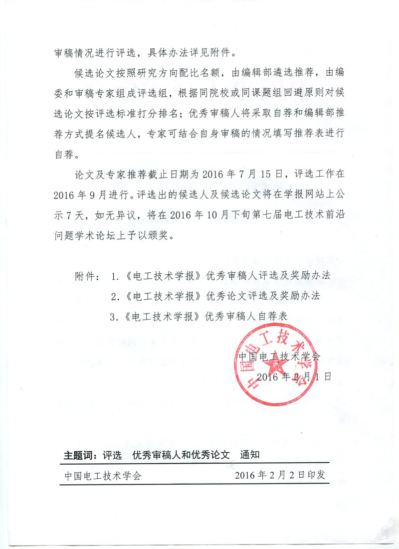 附件:1.《电工技术学报》优秀审稿人评选及奖励办法