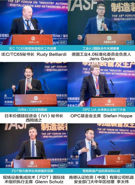 本届研讨会邀请到了智能制造国际标准化核心技术委员会IEC/TC65(工业测控及自动化技术委员会)、智能制造关键支撑技术要素国际组织OPC UA(OPC统一体系架构,一种基于服务的、跨越平台的解决方案)、FDT(Field Device Tool ,过程和工厂自动化系统开发标准)、国际智能制造主流参考架构技术组织——工业4.0、智能制造测试认证国际机构TÜV南德,以及面向未来工业自动化发展需求,对认识、控制制造系统的不确定性、非固定模式问题已展开深度研究与实践探索的日本价值链促进会(IVI)等国际组织专家参讲。