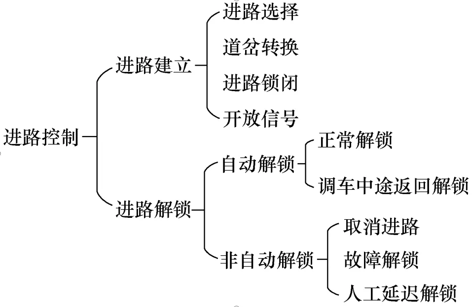 进路控制分为进路建立和进路解锁。进路建立是系统根据操作人员所下达的指令,逻辑推断进路的类型(调车或列车进路)以及列车或车列行进方向(上行或下行、到达或出发),由进路选择得到进路上相关信号机、道岔和轨道电路区段等信息。转辙机将相关道岔转换到进路所约束的状态,确认道岔的位置无误后将其锁闭,使进路始端信号机开放允许灯光,保持指示列车或车列的运转。